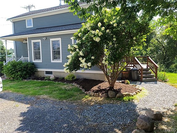 Come and live in historic New Bremen NY, a farm community where the ice is still harvested in the wintertime! This unique property features 1.8 acres bordered by beautiful Crystal Creek, an impeccably renovated 2 bedroom home with a nursery/bonus room, a 2 car garage with attic, and a historic 3 level grist mill loaded with antiques and with open space fit for a variety of business and artistic endeavors. While the house started out as a 1900's parsonage, it was fully rebuilt, expanded, and insulated 12 yrs ago with Anderson windows and a provision for a living room wood/pellet stove. The kitchen and pantry feature floor-to-ceiling maple cabinets crafted locally, a heated ceramic floor, and Corian countertops. The first floor now has an entryway with coat closets, beach and maple flooring, a ceramic tiled powder room, and light fixtures appropriate to the house's origins. The second floor includes warm oak floors, pine ceilings, custom closets, and doors with period hardware. Ceramic tile and a clawfoot tub add character to the bright full bath. The basement is a Large, bright and dry with front load units. Wooded paths lead to the fishing stream with soothing sounds and views