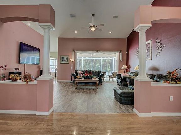 Welcome Home! ALMOST 2 FULL ACRES OF LAND IN MILL CREEK! 3 bedrooms, 2 baths, plus a den/office home, an attached 2-car garage and separate over-sized detached 3-car garage with 10 ft. door is a must-see. Walking through the double front door entryway, you will notice the open design, solid wood flooring, cathedral ceilings and cupola in the ceiling that offers extra natural sunlight. A beautiful formal dining room as well. The gourmet kitchen has stainless steel appliances, beautiful cabinetry and corian counter tops. Inside utility with cabinetry and a sink. The large master bedroom has two walk-in closets, decorative tray ceiling, and a sitting area. The master bedroom also has french doors leading to the lanai. The master bathroom includes double sinks and vanity area, a garden tub, a beautiful shower with dual shower heads, and a picture glass window. The guest bathroom also includes a picture glass window and separate sink and shower areas. The home also has a central vacuum system. With pocket sliding glass doors in the great room that open to the beautiful covered, screened and caged, in-ground spa/pool. The expansive backyard is wooded and private. Enjoy sitting around the in-ground fire pit at night. Yes, this home is sure to impress you from the moment you drive down the long driveway! The AC and airhandler are 5 years young. New and fresh paint on the inside. The roof has recently been steamed and sealed and includes a warranty. Come and see this beautiful property today!