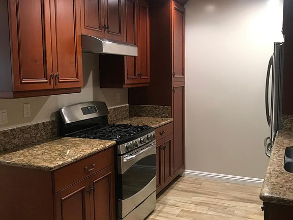 Remodeled apartmentTranquil streetTile flooringCrown moldingsStainless steel appliancesRecessed lightingGranite kitchen countertops
