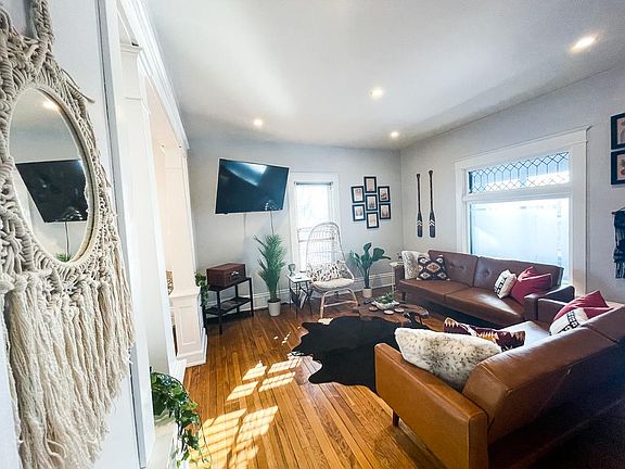 Welcome home to this spacious, boho, mod-chic 3BR duplex apartment in the Heart of Northeast with two levels of living space, artist inspired design and modern finishes throughout. This historic 1911 timepiece was fully restored and remodeled into a boho-modern packed with amazing amenities like coffee bar, two private porches, in-unit washer/dryer, 6-1 record player, professionally cleaned and sanitized to CDC and Enhanced Standards. Prime location in the heart of Northeast Arts District on 5th Street Bikeway near and connected to the Grand Rounds Scenic Byway System, Mississippi River, and Downtown. Managed by the 5 Star Lux Life Rental Team! Totally renovated two unit building with 2nd and 3rd floor unit available for rent. 2 bedrooms on second floor and one master suite on third floor equipped with bathroom, walk in closet, and cabinet storage. Private front porch, private deck, large backyard deck, fire pit, garden, Minutes from Downtown, U of M, Mississippi River, shopping, entertainment, and much more. Private two level unit with 2BRs on the second floor and a huge loft with tons of natural light. Sleeps max of 6 people and is perfectly suitable for a small or large group. This home was newly furnished in 2020 with the comfiest mattresses and stylish boho meets Minnesota decor. Two huge roku smart TVs on both levels, two private porches, fully stocked kitchen, and in unit-washer dryer. Perfect for everyday living, work from here, and for perfect entertaining with family and friends. Complimentary coffee, tea, and coffee bar goodies, free street parking, double lot with garden and fire-pit. We have the highest standards for our cleaning between our tenants stay. We use CDC approved products, hire professional cleaners to clean and disinfect all surfaces in our units. We follow the CDC Enhanced guidelines for cleaning and also provide extra soap, cleaning supplies, vacuum, disinfectant wipes, and even masks. If there is anything you need during your stay just ask. The Sleeping Layout Second Level Bedroom 1: Queen Bed with Huge Closet, Bathroom Access Bedroom 2: Queen Bed with Walk-in Closet, Backyard View Living Room: 2 Futons Third Level Loft Bedroom 3: King Bed with Huge TV, Two other Single Beds, Full Bathroom Top Highlights: 3BR 2BA 1GB WIFI 5 Work Areas 5 Star Location 6-in-1 Record Player Complimentary Coffee/Tea Coffee Bar Sugar, Cream, Grinder, K-Cup, Drip Machine 5 Star Location Walkable Professionally Cleaned Private Central Air Tall Ceilings/Natural Light Two Private Porches Outdoor Deck/Fire-pit Master Loft with View of Downtown Fully Stocked Kitchen Free Street Parking Huge Double Lot Owner pays for trash, water, sewer. Tenant pays for electric, internet and gas.