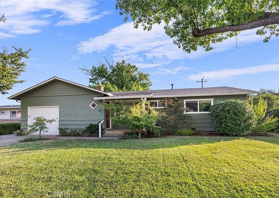 This charming home is located on a quiet cul-de-sac, just blocks from Bidwell Park. It's in a highly desirable neighborhood near Sierra View, shopping, and a popular gym. Walking up to the front door you are greeted by a welcoming covered front porch complimented by a perfectly placed Japanese maple. The exterior features beautiful landscaping, mature trees and a private, large and inviting backyard. Inside, the home has beautiful original hardwood flooring throughout. The spacious living room is bright and airy, freshly painted, and complimented by a cozy fireplace with a brand new Kuma wood burning insert installed. The kitchen is adorable with vintage white metal cabinets and a cute dining nook. The primary bedroom offers a nice deck accessible through a private slider, perfect for morning coffee. The expansive backyard provides ample space for relaxation and play, along with a large garden area ready for planting. Sellers have taken great care of this home and installed a new roof only 4 years old. This home is so cute!