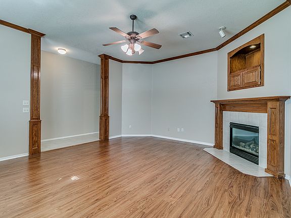 Walk to OU S.Campus; Quick 5 minute drive to I-35 ramp. Quiet safe neighborhood with well kept lawns & homes MIL floor plan w/high vaulted ceilings, Upgrades; ceramic tile floors, custom wood cabinets and trim, solid surface countertops, energy-efficient appliances. Replaced within 3 years: HVAC sys, roof surface, dishwasher, garbage disposal. French doors in Den open to enclosed porch, hot tub, wood fenced, and treed backyard, gas fire place w/wall switch, jetted tub, walkin shower, Woods blinds & wood shutters throughout, skylight in kitchen, central Heating n Air, refrigerator, garbage disposal, microwave, Crown moldings, hot tub.