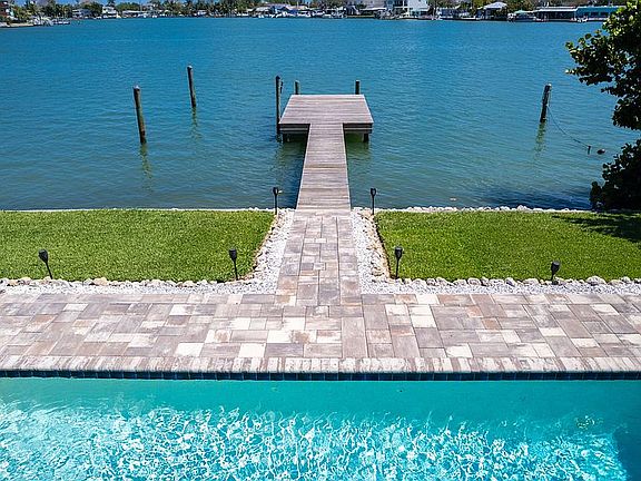 Rare opportunity to own a waterfront home with breathtaking OPEN WATER views of Boca Ciega Bay. Walking distance to madeira Beach and minutes by boat to Johns pass the gateway to the beaches. This home is the Highest point in neighborhood, NEVER flooded. Home boosts new laminate floors, new roof, tankless hot water heater, all block construction with custom hurricane screens. Outside the new PRIVATE DOCK offers DEEP WATER ACCESS. Extra-large 70 Ft. dock is grandfathered in. The newer pool has a heater and chiller to keep the temperature perfect year-round. There is a shed for storage and large covered paver patio for outdoor entertainment which includes daily dolphin sightings. Schedule a showing today, paradise is waiting.