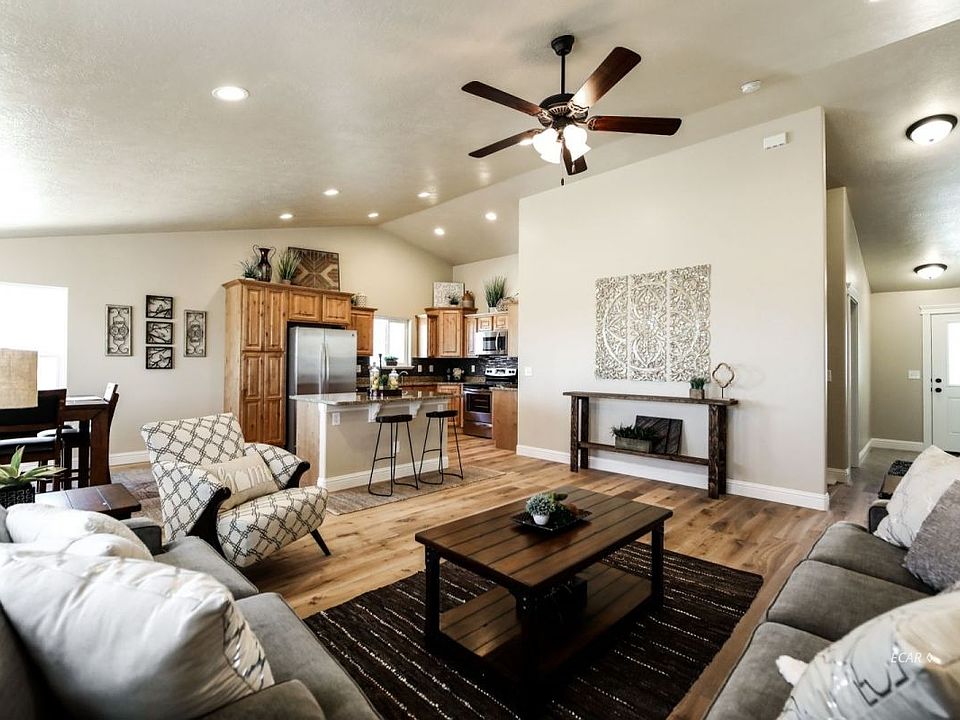- Flooring- Carpet, Walk-in Closets, Flooring- Tile, Vaulted Ceilings, Flooring- Hardwood, Ceiling Fan(s), Smoke Detectors, Chandelier(s), Insulated Garage
