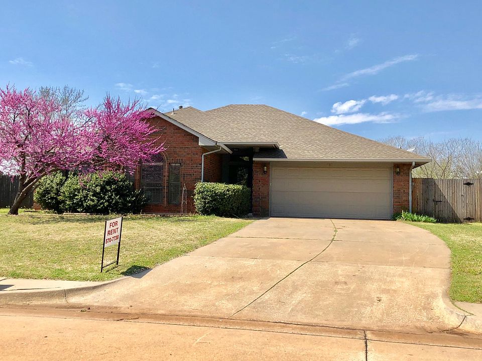 Great Edmond home. Available immediately with 3 beds, 2 baths, 2 dining. Great location off of Danforth Rd. and Santa Fe, just east of Walmart. Large living are with fireplace. Large master suite with his and her vanities, separate tub and garden tub. Greenbelt lot with no home behind you.