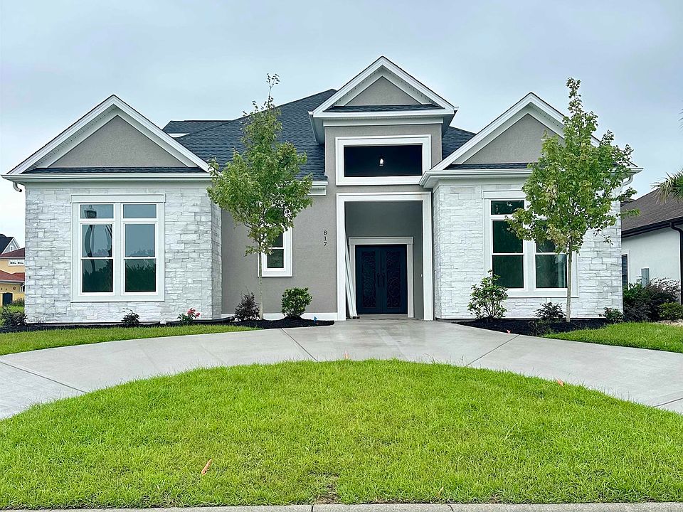 This is a beautiful custom to be built single story home in the gated intercoastal community of The Bluffs on the Waterway. Mediterranean living at its finest in this beautiful brick home with soaring 12 foot ceilings throughout, 5 ensuite bedrooms, open concept floor plan, built in fireplace, and a spectacular outdoor living space including a sunroom and all season porch with a summer kitchen and full bathroom. The primary suite will surely impress with the double tray ceiling, large closet. The bathroom is an oasis with double sinks a beautiful wet room with a free standing tub. This home is designed for entertaining and will be nothing short of impressive. The Bluffs on the Waterway is located directly on the Intracoastal Waterway with 2 private club houses, community pool, tennis courts, playground, boat/RV storage, and boat launch ramp. Just minutes away from our sandy beaches, shopping, medical services, dining, the airport, etc. Also, located in the Award Winning Carolina Forest Schools district.