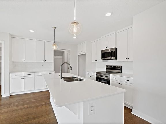 This Basswood 2 story has 4 bedrooms 2.5 baths and flex room we like to call the learning lounge in the heart of the upstairs. There is a home office on the main level and a large unfinished lower level for added future value. The kitchen has quartz island that overlooks the dining room and great room with giant walk-in pantry. Luxury vinal planks throughout the entire main level, stainless steel hardware & plumbing finishes give a fresh open & inviting look. Upstairs you'll find a large primary bedroom and bath has quartz tops, walk-in shower, massive walk-in closet. The other 3 bedrooms share the bath 2 also with quartz countertop, two sinks, & a tub-shower combo. Wow!