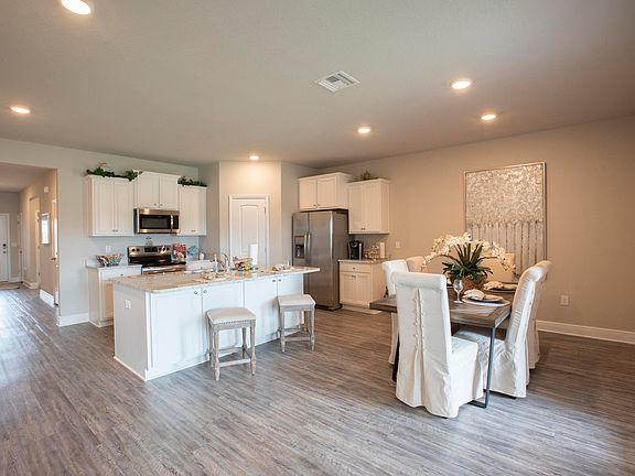Model home now for sale! The Rhett plan features 9'ceilings throughout, luxury vinyl plank flooring throughout the main areas and carpet in the bedrooms. This home includes brushed nickel hardware, granite countertops, and elegant doors. The kitchen has a center island, anice size walk-in pantry and the appliances include smooth top range, microwave and dishwasher. Open Kitchen to Living Room and dining area, makes this homeperfect for entertaining. Bedroom 1 has as nice bath with walk-in closet, garden tub and separate shower. This is a Smart Home, which is a standard packagecomplete with Skybell door bell, Echo Dot Device, Qolsys touch panel and KwikSet combo lock for easy entry.