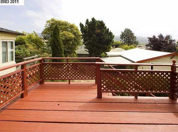 Wonderful Farm House type of home with views of the Berkeley Hills. Nice deck off of kitchen. Large sunny rear yard and detached double garage with work shop area. Partial basement. A true "Diamond in the Rough". Floors refinished and house repainted inside and out.