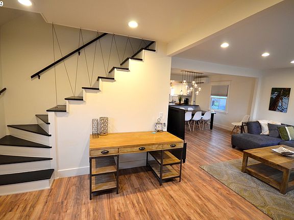 Gorgeously remodeled & stunning downtown Hood River home! This 2bd & 1.5bth home offers a large deck- perfect for summer night dinner parties. Upstairs master bedroom w/ attached half bath. Loft area has potential to be converted to a 3rd bd. Gourmet kitchen w/ stainless steel appliances, & quartz counters. High efficiency mini-split HVAC system.Enjoy Columbia River & Mt. Adam's peak views & a large lot ready for your landscaping ideas!