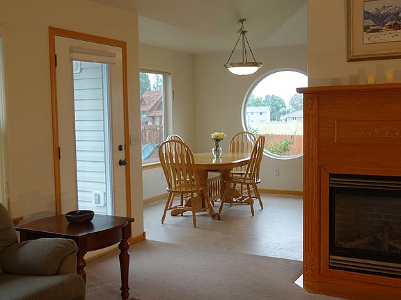 Roomy ranch layout. Vaulted ceilings. 4 bedrooms, 3 bathrooms, and a large wood shop in the basement that could easily become a 5th bedroom. Large fenced back yard with a fire pit, hot tub, and a shed. Underground sprinkler system. Borders state land on 2 sides. Close to elementary, junior high, and high school.