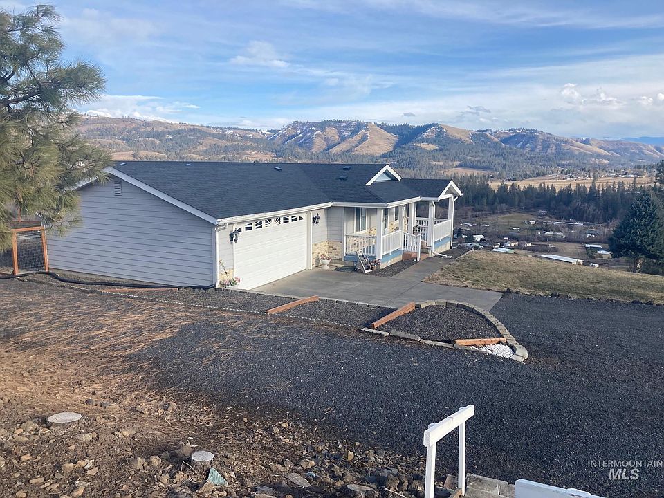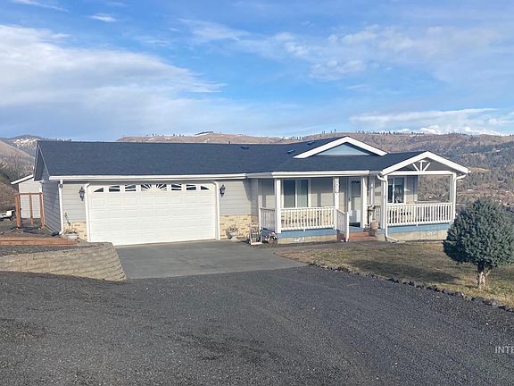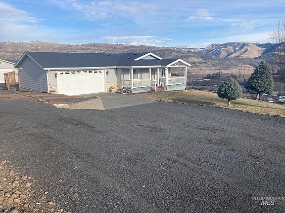 In the city limits of Kamiah a nicely setup 3 bedroom 2 bath manufactured home on approximately 1/2 acre. There is a 24 x 24 attached garage and a a separate 20 x 30 garage/shop. A new roof in 2022. The back yard is fenced with a 14 x 16 raised deck. The home sits on top of hill overlooking the town of Kamiah, the Clearwater valley and views to the Bitterroots of Montana.