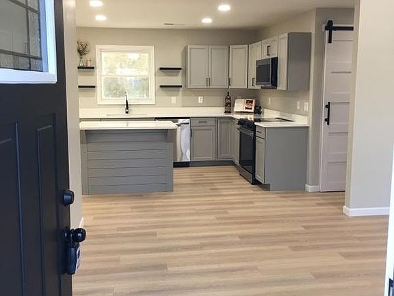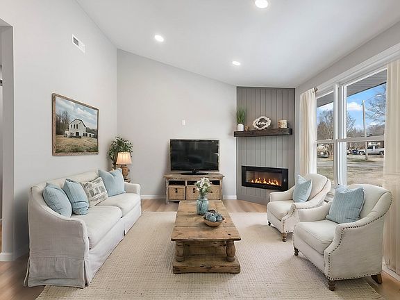Welcome to this beautiful 1400 sq ft renovated brick home. Everything is new and modernized. Features include: vaulted tray ceilings, fireplace with mantel, quartz countertops, modern stainless appliances, large pantry with barn door, master bedroom complete with ensuite bathroom..including double vanity, large shower with rain head, and walk in closet with organizer. Also has large covered porch with location for an outdoor TV..perfect for gatherings. Home is located in town so it has trash pickup. Everything has been updated: New wiring, plumbing, insulation, drywall, paint, windows, roof with architectural shingles, kitchen, bathrooms flooring, trim, doors, lights, etc...basically a new home.