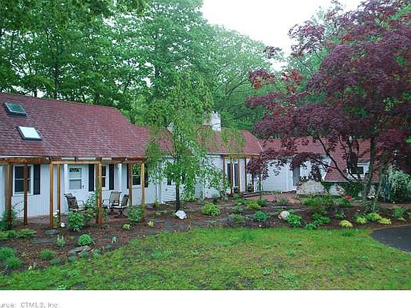 Charming, four bedroom, 2-bath cape on 1.5 beautiful acres. Convenient to downtown New Haven, this home is nestled in a private setting that abuts woodland trust. Has a ranch feel with most of the bedroom and living space on the main level. A gas fireplace with built-ins warms the combo living-dining room space featuring hardwood floors, slider to spacious deck, and lots of windows with nature-filled views. An adjacent room is counted as bedroom space, but also makes a nice study. The updated, eat-in kitchen has a large pantry and access to the garage and utility room. The first floor family room offers great space to relax. The adjoining mud room/laundry has sliders to the back patio, wired for hot tub use. Two bedrooms and renovated full bath are centrally located on the main floor. A few steps up leads to the large master bedroom and bath - cathedral ceilings, unique windows, and its own balcony deliver seasonal views for this private retreat. A loft area off the master provides a unique space for office, exercise area, sitting room, etc. A 400 s.f. unfinished storage room at the far end of the home could also make for an art studio or workshop. Amity school system.