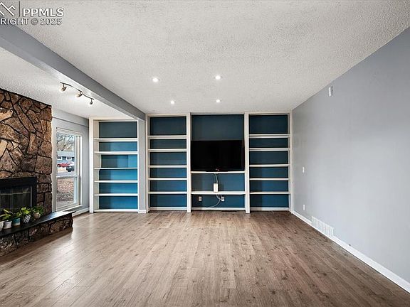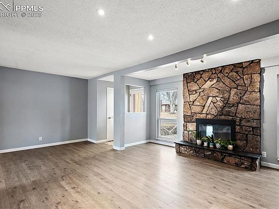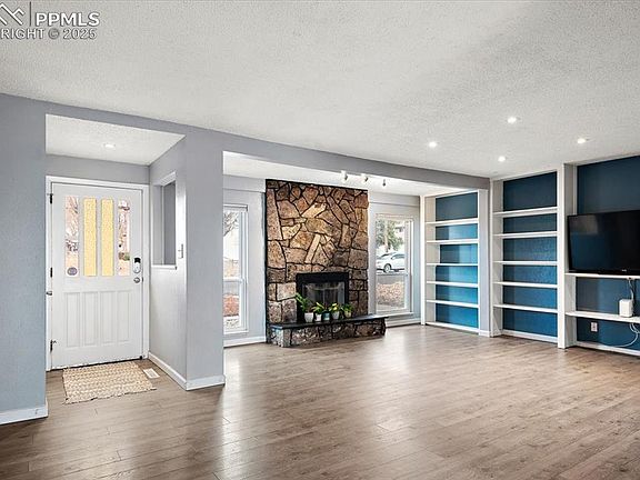 Welcome home! Imagine your next chapter in this 3 bedroom, 3 bath rancher, ideally located in a mature, tree lined neighborhood near military bases, shopping, and amenities such as the state of the art widefield recreation center, featuring Swimming, fitness, baseball, volleyball, soccer, tennis, and gymnasium facilities. A large living area welcomes you in, with a fabulous stone fireplace and built in wall of bookshelves. The kitchen and dining area are wonderfully appointed with stainless appliances, built in additional storage, and a huge walk in pantry! This home boasts a large primary suite with ensuite bath featuring walk in shower, and a fabulous bonus space that could be utilized as a sunroom, family room, dining room, game room, or easily converted to another bedroom with private access. Walk out to a large backyard with two storage sheds which has plenty of space and privacy to share laughs on the patio and sit out by the fire. Book your showing today and be amazed at all this home has to offer.