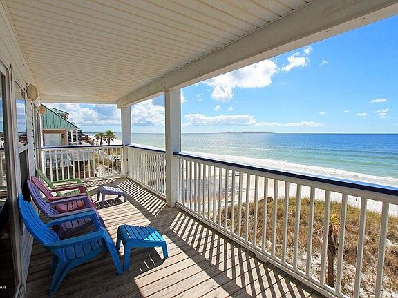 Top Floor Beach Flat! NO condo fees or Homeowner Association. This is a fee simple unit of a duplex on the beach. Well maintained GULF FRONT 3 bedrm 2 bath home with amazing beautiful balcony views of the beaches, gulf, sunrise, sunsets, dolphins, boats and ships passing! Rich life, beach life, salt life! This 2nd flr Flat is walking distance to Toucan's, groceries, & seafood! Don't miss this opportunity to own a slice of beach front in a hot location of Mexico Beach,s finest! Fully furnished, turn-key, vacation rental with active income & clientele, history of generous $30-35k operating income. Of course you can keep the unit for yourself if you are seeking a primary or second home on the GULF OF MEXICO. Call today to set up a showing. All offers appreciated.