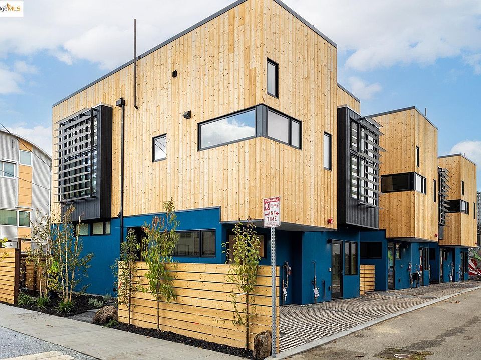 One of six sleek, sustainably built 2BD/1.5BA newly completed residences rise on a once-vacant and walkable infill site just blocks from parks, cafés, shopping, and transit. Each home flips convention with an inverted floor plan—private bedrooms below, open living and kitchen space above—and a rooftop deck showcasing Bay breezes and hill views. Thoughtful design brings in abundant daylight through large Marvin windows with unconventional sunscreens, while tight construction, high R-value insulation, and HRV ventilation ensure comfort and efficiency. Eco-forward features include permeable paving, DrivableGrass parking, natural wood siding, on-demand hydronic heat, recycled glass counters, low-flow fixtures, dual-flush toilets and individual 220 outlets for EV charging. Ten new trees, including fruit varieties, add beauty and shade. You'll find this modern Berkeley living smart, sustainable, and unapologetically stylish. Pricing may differ per unit. Open Sat/Sun 1:30-4:30
