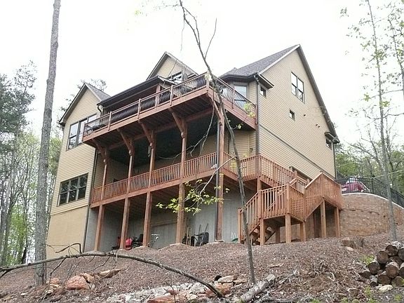 Enjoy the best view Lake Arrowhead has to offer! Views of the lake and long range mountain views of the Blue Ridge Mountains are simply breathtaking! It features top of the line upgrades to include: pine floors, custom built cabinets, copper stove hood in kitchen, double-sided stacked rock fire place in the keeping room and den, double decks, master on main, covered porch on the back deck, oversized laundry room with mud room, huge third car garage or workshop, full finished terrace level, and all bathrooms have tiled baths with granite. This home is sure to please!