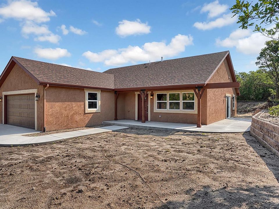 **OPEN HOUSE 8/4 12PM - 3PM** JUST FINISHED - Move in ready, new home! Discover the craftsmanship & quality of this Monument area home. True main level living. Stucco exterior, covered front porch w/ wrap around patio, great room concept w/ walk out to side yard/patio. Near end of culdesac in area of new custom homes. Soaring vaulted ceilings & skylight. Sunny kitchen features slate appliances & large island & wood laminate flooring, tile entryways, large closets. Spacious master retreat w/oversized walk-in tile shower, walk in closet & double sinks. Easy access to Santa Fe trail. Separate laundry room. Scattered pine trees & scrub oak plus retaining wall along wall side & back yard provides a private outdoor living space ready to add your own landscaping. Closed cell R49 insulation in ceilings & 3" in exterior walls=year round comfort & low utilities. Separate laundry room. Small, family owned local builder. Close to I-25/shopping/Lewis Palmer #38 schools.