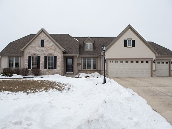 Spacious updated ranch features four bedrooms, walk-in closets, two full bathrooms, full bath off master bedroom. Beautiful kitchen with walnut floors, granite counter tops, over sized granite sink, and travertine back splash. Cathedral ceiling, gas fireplace, newer carpeting and paint. Professionally landscaped with patio and three and a half attached, extra deep, 29 foot garage.