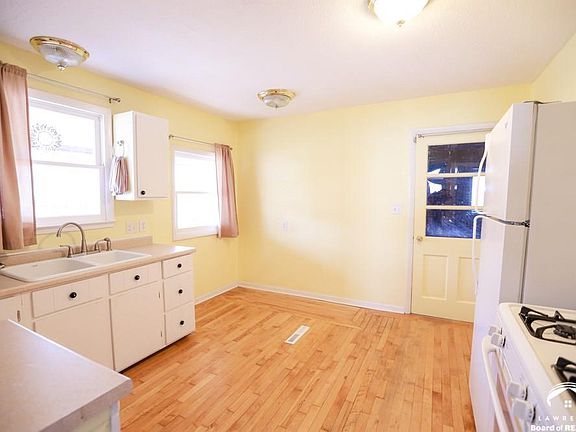 INVESTOR ALERT! In the Center of Lawrence, near many schools and the University, shopping and just up the hill from Downtown! Features beautiful Hardwood Floors, & Fresh new Paint! The private fenced Backyard features a newer Deck that backs up to City Park w/ a Beautiful wood gated garden area and lovely landscaping and Sunflower mural storage outbuilding. This Property is ripe for the picking!!