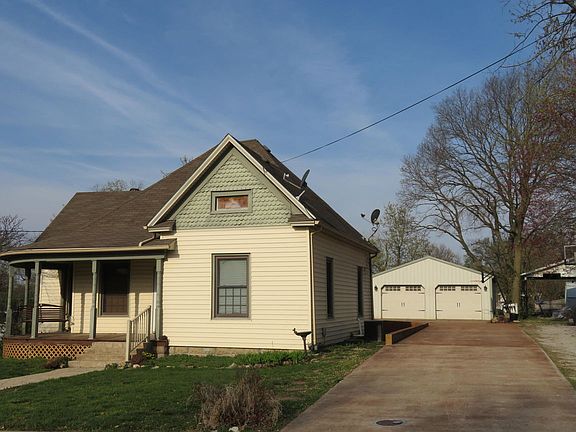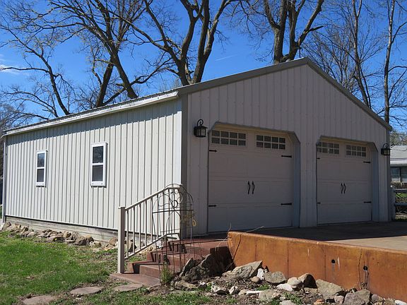 SWING ON THE FRONT PORCH AND ENJOY LIFE - Loved by the owner for the past 41 years!! This property has it all!! Darling well maintained home, oversized 24 x 30 2 car 'Morton 'type' garage plus a 'She Shed!!!' Two bedrooms, cute kitchen with all appliances w/ eating area, formal dining room, living room, full bath and main floor laundry. Steps to attic lead to an unfinished area that provides future living area. Full unfinished basement. Enjoy your summer evenings on the beautiful stamped concrete patio. Sitting on a double deep lot.