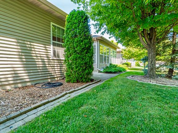NEW LISTING! BEAUTIFUL, RANCH TOWNHOME IN BRIAR COVE WITH MANY BUILDER UPGRADES THROUGHOUT. Very PRIVATE backyard and patio area with mature trees, evergreens and shrubs. Builder UPGRADES: CROWN MOLDING, LARGER, primary en -suite, SUNROOM with an exterior entry door, 42 in kitchen cabinets and tray ceilings in each bedroom. NEW HVAC and HWH 2023, NEW CARPET AND UPGRADED PAD (June 2025). This unit features a GORGEOUS ENTRY w/ a 14 ft ceiling AND HIGHER CEILINGS THROUGHOUT UNIT, 2 VERY SPACIOUS BEDROOMS, dining room, GREAT ROOM, SUNROOM and MAIN FLOOR LAUNDRY. LOW monthly HOA FEES TOO! A TRANQUIL pond and waterfall are both part of this lovely subdivision!