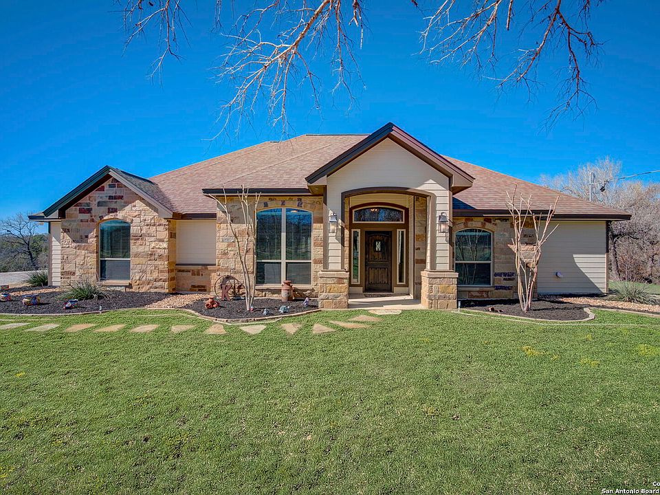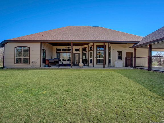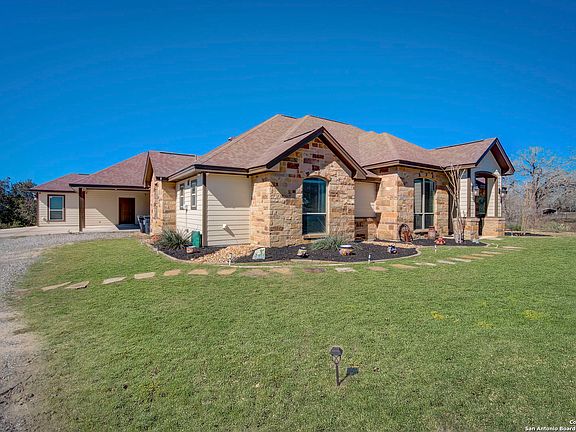 A Must-See, Move-In Ready Home on 6 Acres in Highly Desired Shannon Ridge Subdivision. This stunning custom-built home by KC Custom Homes offers nearly 3,000 square feet of living space, with 4 bedrooms, 3.5 bathrooms, a media room, an office, and an attached mother-in-law suite. Set on 6 serene acres, the property provides a picturesque view of the surrounding countryside and Kickaster Creek. The home's spacious layout is designed with both luxury and comfort in mind, featuring a farmhouse-style chef's kitchen complete with pull-out cabinets, a deep ceramic farmhouse sink, stainless steel vented hood, a 10-foot quartz island, and a large walk-in pantry. Enjoy the open feel of vaulted ceilings with wood beam accents and tray ceilings, along with the privacy of a split floor plan. Natural light pours in through the back windows, framing the beautiful outdoor views. Outside there is a large covered car port for two car parking plus 1000 square feet of additional concrete slab as well as a one and a half car garage with plenty of storage space and 220 outlets. Entertain in the outdoor kitchen equipped with a sink, and keep your flower beds vibrant with the built-in sprinkler system. As an added incentive, this home includes all major appliances: two full-sized stainless steel refrigerators, a washer, dryer, and microwave. VA buyers may also take advantage of an assumable loan at an incredible interest rate. Don't miss your chance to experience peaceful country living in this exceptional home!