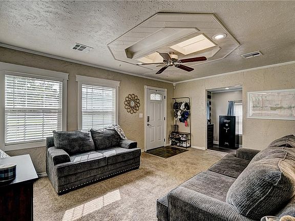 Darling home in the heart of Midwest City that is move in ready! Large master with awesome walk in closet. Large open den that flows nicely into the updated kitchen. Stainless steel appliances,wood look flooring,concrete counters and great breakfast bar, are some of the amenities in the kitchen. The 2 bedrooms have original wood flooring and are a good size. Hall bath has new cabinets,tile,flooring and fixtures. New vinyl windows throughout and lovely french doors that lead to the outside. Don't miss out on this renovated home that will go quick. Large yard with a in ground storm shelter that they are selling in as is condition. Great home just waiting for you!!
