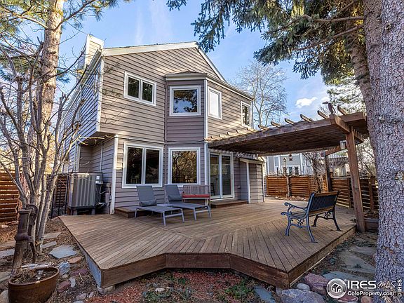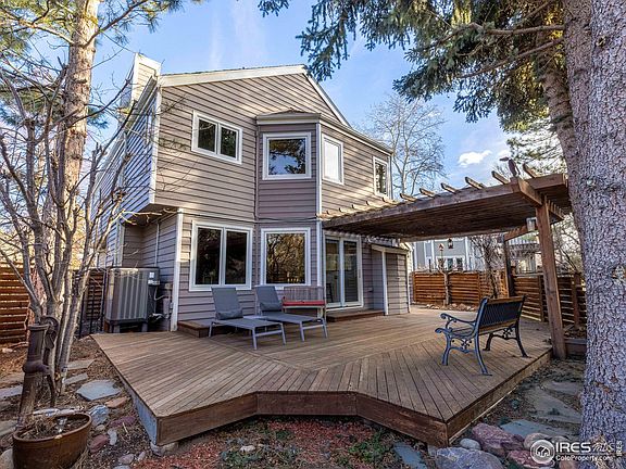 Discover a home where every detail reflects care and meticulous attention. As you step inside, the warmth and affection poured into this home are immediately apparent, showcased by beautiful inlay hardwood floors and a host of considerate updates. Situated in an enclave known for its minimal traffic and friendly neighbors, this gem of a location grants you seamless access to Boulder's celebrated bike paths, excellent schools, University of Colorado, Pearl Street's vibrant scene, Flatirons golf course, and the natural beauty of Bobolink open space. Throughout the summer, enjoy the cool comfort provided by mature trees, and come winter, bask in the sunny embrace of the south-facing backyard from your cozy deck. This home is well designed to accommodate guests or an au pair, featuring a lower level equipped with its own entrance, food prep area, living space, bathroom, bedroom, ample storage, and laundry facilities, ensuring privacy and comfort. Embrace sustainability with this energy-efficient home, boasting low utility and gas costs, enhanced by a newly installed heat pump/AC and furnace in 2022, induction stoves, and cutting-edge Tesla solar panels. In the winter, cozy up to two fireplaces. The spacious primary suite offers views of the mountains that shift with the seasons and a private bathroom complete with a steam shower for ultimate relaxation. The property's lush landscaping not only enriches your backyard view with a picturesque pond and greenspace but also ensures privacy. This home is a sanctuary, offering both a connection to nature and a retreat from the world outside. Check out the listing video!