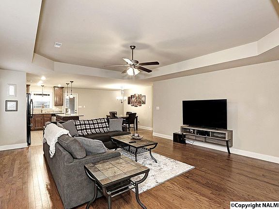 - LIVING ROOM DESC: Crown Mold, Smooth Ceiling, Wood Floor, Ceiling Fan, Trey