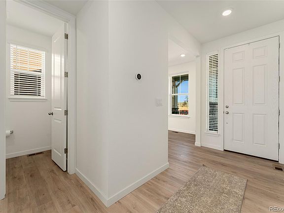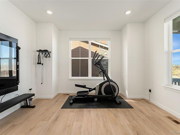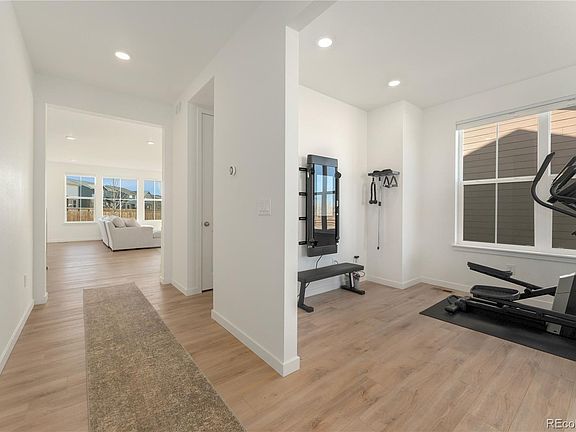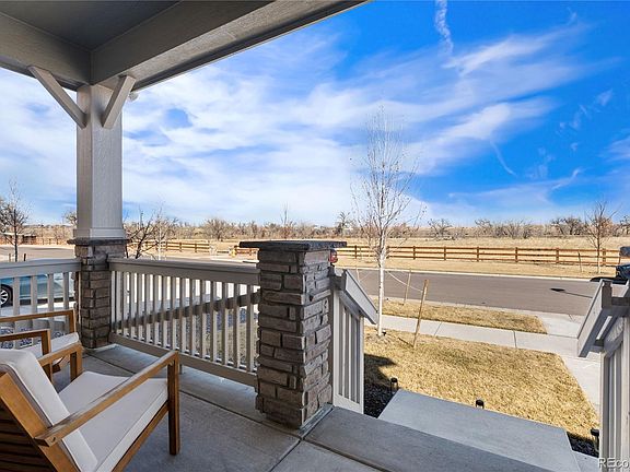 Seller offering closing costs and prepaids to help buy-down your rate! Welcome to this stunning Pinnacle 2-story home nestled in the Waterstone community! Enjoy breathtaking sunrises from the east-facing front porch and quick snow melt on the sidewalk and driveway. Step inside to find a flexible room, currently used as an exercise room (Tonal home gym included) or perfect for an office or more! The main floor features a convenient powder room and coats closet. This open floor concept seamlessly holds the dining room, living room, and kitchen with 9 foot ceiling and large windows creating the perfect scene for hosting. The beautiful chef's dream kitchen boasts stainless steel GE appliances, Consentino quartz countertops, roomy pantry, a large island with seating, ample cabinet space, and sliding glass doors to the covered back deck. You can access the attached 2-car garage directly from the kitchen for everyday convenience. On the second level, the primary bedroom offers a private en-suite bath, large rain shower head, vanity area, and custom walk-in closet. In addition to the primary bedroom, there are three spacious bedrooms, a full bath, and completed with Samsung HE washer and dryer laundry room. Outside, the covered back deck leads to a fully fenced backyard with established grass, shrubs, and a shady tree, in addition to an in-ground irrigation system supported by X-Core irrigation controller. This home comes with a Ring Video Pro doorbell, base security station, security keypad, door contact sensors, motion sensor, smart smoke & CO detectors. Smart Google Nest thermostat, eero Pro 6 Wifi system, Flo by Moen (Smart Water Shutoff), LiftMaster myQ Smart Garage Control (great for garage delivery from Amazon) and a smart level lock (remotely lock/unlock your front door from the app). Vinyl plank flooring in the main level and new carpet in the second level. Enjoy the parks, playgrounds, and the neighborhood trails and minutes to E470, and DIA, I-70, welcome home!