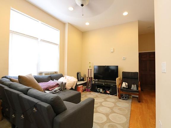 Nicely updated Little Italy 2 bedroom 1 bath apartment with all utilities included (gas, heat, AC, water and electric all paid by landlord). Second floor rear unit. Solid oak hardwood floors thruout. Ideal open floorplan w/kitchen open to the living space. Kitchen has gas stove, refrigerator and granite counters including a large breakfast bar. Two spacious bedrooms that will comfortably fit queen size beds and desks. Gorgeous bathroom with ceramic tile and glass shower. Window AC and central heat. Tall ceilings and lots of windows. Credit check and security deposit required. Sorry no pets and no smoking. 1 year lease minimum. Available August 1st, 2025.