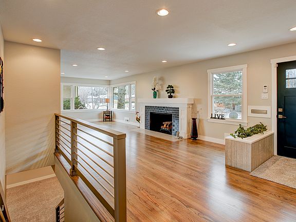 Complete custom remodel with stunning main level living amenities. Home sits in desirable established Skyway neighborhood. Home immediately welcomes you with impressive landscaping and curb appeal. Stamped concrete pathway and large porch greet you as you enter. Step inside to find a spacious living room with original refinished hardwood flooring, large picture windows for great natural light and a gorgeous wood burning fireplace with custom glass subway tile-work and large mantel. Spacious dining area gives the perfect space for entertaining. Roomy gourmet kitchen has new gray shaker cabinets, beautiful white quartz counter-tops, brand new stainless appliances & custom glass subway tile back-splash. Kitchen offers a nice breakfast nook area & walks out to back patio. Travel down the hall to spacious master suite with refinished original hardwood flooring, large walk-in closet & privately adjoined master bath with large spa shower, dual vanity & custom tile-work throughout. Main level also features a secondary bedroom with original hardwood flooring & full bath with custom tile-work throughout. Fully finished basement is an entertainers dream! Large family room welcomes you with enough space to hang out & relax. Family room has new carpet & custom tiled wood fireplace. Have family movie night in the cozy home theater with stadium seating. Basement also has large laundry room with sink, two additional bedrooms with new carpet & bathroom with custom tile-work. Other features include 6 panel doors, custom paint throughout & AC. Step out back to find a roomy detached two car garage, a spacious stamped concrete patio, large fenced yard & impressive landscaping. No rear neighbors for added privacy. Close to shopping & more. Must see!