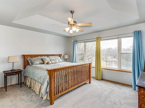 Its all about Location, Location, Location! This lake front lot is absolutely stunning! 4 bedrooms, 3 bathrooms, 3 car insulated garage, full finished walk-out basement, an in-ground heated swimming pool, fenced backyard, sprinkler on an irrigation well with a great view of the lake are just a few specialties of this remodeled home! As you walk in through the great foyer to the living room you won't be able to miss the gorgeous brick fireplace, vaulted ceilings and lake view. The kitchen is spacious and warm with lots of cabinet space and natural lighting. The spacious master bedroom with coffered ceiling and large windows over looking a great view of the Lake. The private, Master bathroom has a soaker tube and large shower with a walk-in closet. The basement family room is finished with another beautiful brick fireplace and two more rooms each with large closets. There is plenty of storage in a separate room next to the unfinished concrete shelter room. Step outside to the double size, large deck overlooking the lake with an expansive, automatic awning, patio lights and large patio to the pool for your entertainment. The pool is a heated, salt-water pool with a powered cover. A fully wrought iron fenced-in backyard, allows you to see the amazing tree lined view of the lake. Drop on by; you wont want to leave!