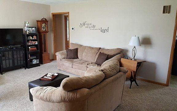 Move-in ready 3 bedroom ranch with new interior paint and new carpet throughout. There are hardwood floors under the carpet. Nicely updated kitchen and bathroom. The roof is only 3 years old. There is a nice big fenced back yard for the kids and pets. This would make a great starter home or home to downsize in with no steps inside.