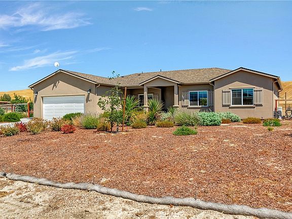Even the roosters are crowing about this better than new 3 bedroom, 2 bath home on an oversized lot that is lively with drought tolerant landscape, fruit trees and raised garden beds. The front porch offers a peaceful welcome to your new home and gives off a take your hat off and sit awhile vibe. You enter into a generous living room, dining room and kitchen open floor plan style, easy entertaining concept. Office/Den sits off the living room with French doors. Turn your garden harvest into a culinary delight in the spacious well-appointed kitchen. Situated for privacy is the primary suite to include an enormous bathroom featuring a soaking tub, walk-in shower and custom walk-in closet. Two large bedrooms and a full bath occupies the opposite side of this home. Indoor laundry room with entrance into a 2-car garage with upgraded cabinets, Bamboo worktop and 101 Bottle Wine Cooler. Relax under the custom rear patio while taking in the views of the nearby hills. Inquire about the many custom upgrades.