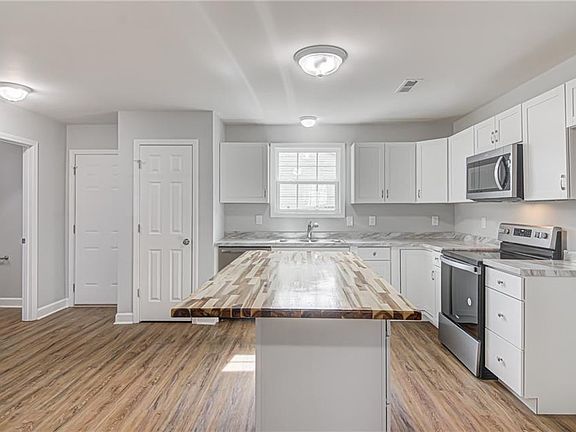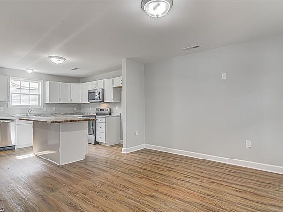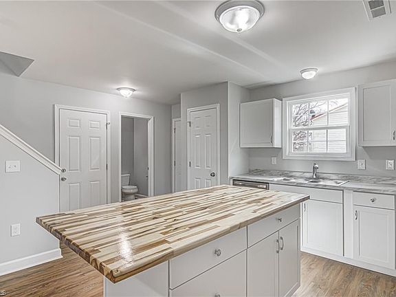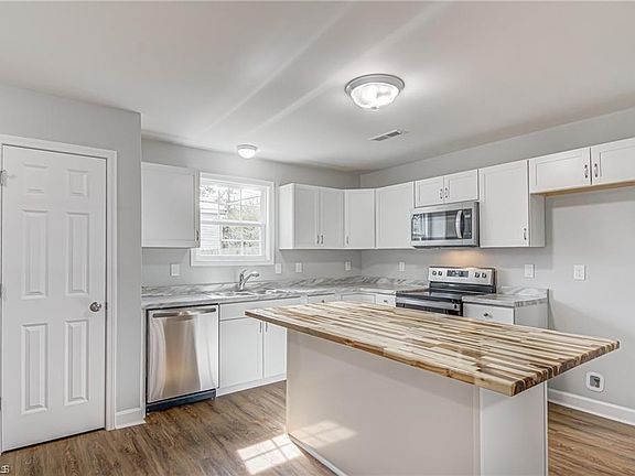 Ready for immediate move in! Certificate of Occupancy issued in 2024! Two story 3 bedroom 2.5 bath home with maintenance free vinyl exterior and one car garage situated on a large corner lot. Boasts an open floor plan that allows for cooking in the kitchen while entertaining your guests in the family room. Kitchen features a large butcher block island, white Shaker cabinets, pantry, stainless steel dishwasher, free standing range, and built-in microwave. Primary suite with cathedral ceilings and double vanity in primary bath. Conveniently located to Downtown and only 2.4 miles to High Point University. Second story laundry, covered front porch, garage door opener, paved patio, luxury vinyl plank flooring on the main level and baths, and the peace of mind of having windows, roof, and HVAC installed in 2023 and 2024, all combine to make this a must see!