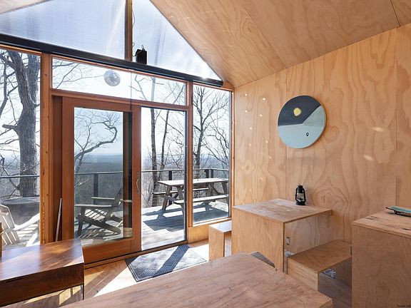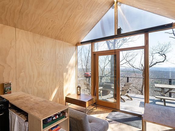 Escape to your slice of heaven with this stunning off-grid cabin on 27.2 acres of breathtaking land in the heart of the Catskills. This seasonal cabin, with a deck and garage, is the perfect getaway from the hustle and bustle of everyday life. The cabin boasts breathtaking views of the mountains, hills, and valleys. Inside the cabin, you'll find a Scandinavian-inspired design with a propane stove, sink, and refrigerator. The open-plan living space with a loft above is filled with natural light and a cozy fireplace. There’s electricity on site (not hooked to the cabin), a spring box for water, a pressure tank, a pump in the IBC tank, a gas generator, and a composting drum. The cabin is wired and ready to be connected to the grid or solar panels. The cabin is surrounded by stunning hiking trails and acres of land to explore. You can fish in the nearby streams, hunt for mushrooms in the woods, or explore your land. With so much natural beauty at your fingertips, there's no limit to your adventures. This property is centrally located just 10 minutes to the bustling town of Catskill and 20 Minutes to Hudson and Saugerties. This off-grid cabin is perfect if you're looking for a peaceful retreat in a stunning natural setting. Build a dream home on the site and enjoy living off the grid while it's being built. Don't miss your chance to own a piece of paradise in the Catskills.