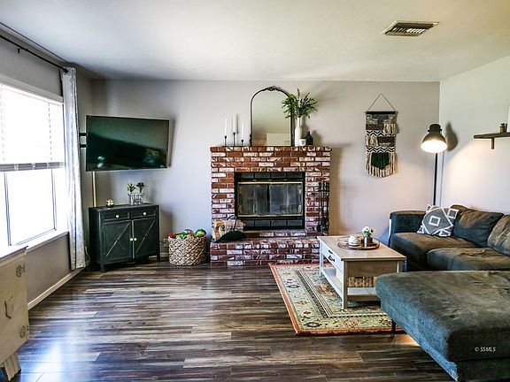 CHRISTMAS TREE LANE HOME! Beautifully remade and remodeled! Wood-patterned Pergo flooring in living room with wood fireplace, scraped ceilings, and soothing color wall tints everywhere. Kitchen hosts new vinyl flooring, Formica counters, stainless sink, white Shaker cabinets, stainless/black appliances, and recessed lighting. Master bedroom is comfy with a nice walk-in closet, ceiling fan, and light brown carpet. Renovated master bathroom with new vanity, a sliding barn door for extra privacy, tile flooring, marble counter, and a resurfaced walk-in shower. Two other bedrooms are a great fit. Nice backyard set up out back! A semi-enclosed back porch, a paver brick patio with a cool shade sale cover, green grass, and a 10'x10' metal shed. Summer comfort with a MasterCool unit. Washer & dryer stay!! Located in the middle of a quite cul-da-sac street with a great family atmosphere from surrounding neighbors who all participate in Christmas lighting festivities! PRICED RIGHT! JUST ASK FOR THE COMPS!