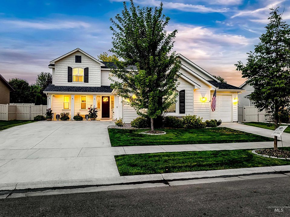 Better than new and brimming with charm! This modern farmhouse in The Meadows at West Highlands blends timeless lines with modern details and a welcoming front porch. The true showpiece awaits in the garage—gleaming epoxy floors, custom cabinetry, workbench, shoe storage, and yard tool rack create a space as functional as it is impressive. Whether for projects, hobbies, or simply keeping life beautifully organized, it’s a garage that feels like an extension of the home. Inside, the thoughtful floor plan includes a main-level bedroom and bath for guests, fresh carpet, and a well-appointed kitchen with a butler’s pantry perfect for morning coffee or extra storage. Outdoors, a newly. covered patio invites evenings by your fire pit, while pets enjoy their own picket-fenced retreat. Set on a spacious lot with mature growth, this home is complemented by community amenities—pool, pickleball, parks, and shady paths—all in a quiet yet convenient location close to healthcare, schools, dining, and freeway access.