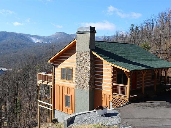 Very unique log cabin with a nice view of the mountains, the ski slopes and the Tram! Newly built following the Gatlinburg fires of 2016. Other features include wood fireplace, hot tub, large deck, front porch and more! Worth a look!