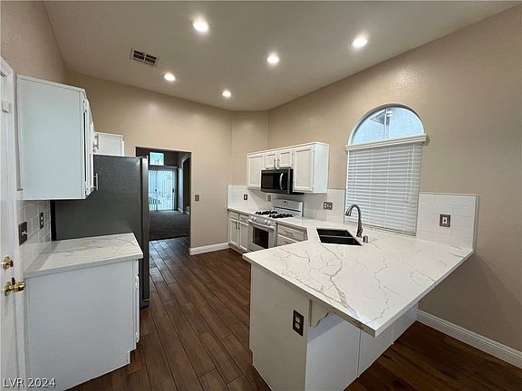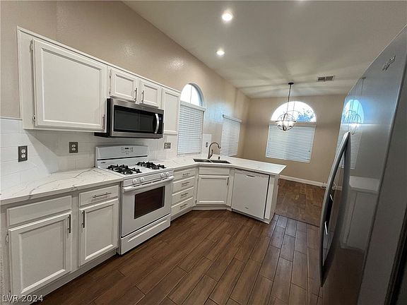 Lovely 3 BRs single story house located in desirable Summerlin area, close to Summerlin Hospital. Newly remodeled 2 years ago. Tile in wet areas, carpet in living & bedrooms. Bright & airy kitchen with quartz countertops & backsplash. Completely remodeled bathrooms. Synthetic grass in the backyard. Hurry up before it's gone!!