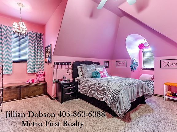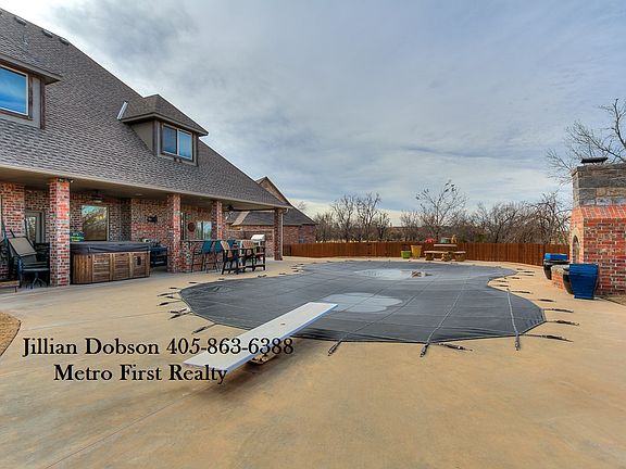 Call Jill 405-863-6388 for info!! Absolutely Stunning Custom Home by j.hill with Designer Features throughout. Fabulous floor plan features a true 4 Bedroom, 3 Full Baths, 1 Powder, Study w/High Beamed Ceilings, Bonus Room. Beautiful Kitchen w/Stone/Brick Arch Over Cooktop, Gorgeous Granite, Under Cabinet Lighting, Punched Copper Farmhouse Sink, SS Appliances, Pantry, Custom Cabinetry & Crown Molding. Gorgeous Hard Wood Flooring in the Dining/Living/Kitchen is Out Lined by Brick Flooring in the Hall/Entry Area. Living Area Features a Stone Fireplace while the Formal Dining offers a Brick. The Endless Unique Details Set This Home Apart From The Rest. The Covered Outdoor Living Area features a Fireplace, Exterior Kitchen, providing a Resort Style Backdrop to the Gunite Salt Water Pool & Cabana House on .85 of an Acre. Sellers have installed an 8 person Storm Shelter & Sprinkler System. Whether your idea of Enjoyment is Quiet and Comfortable Seclusion or Entertaining Friends and Family in Style, this Home has you Covered. Call or Text 405-863-6388 Jillian Dobson to schedule your private tour or for any questions.