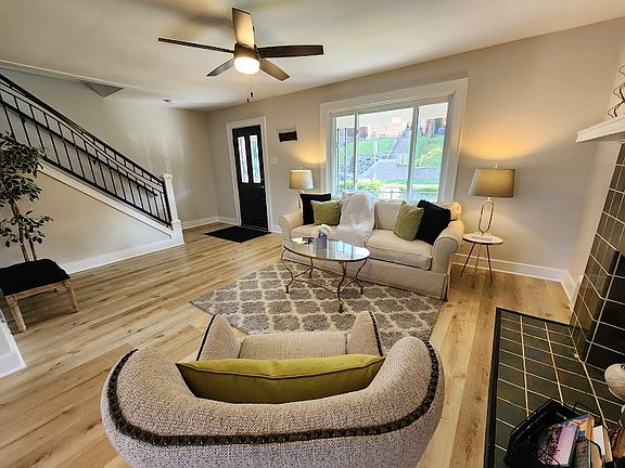 Beautifully updated home in Brookline featuring a Stunning New Kitchen, Modern Lighting, New Flooring & an Open Concept Main Floor. The Kitchen has White Shaker Style Soft Close Cabinetry, White Calcutta Quartz Countertops, a Huge Peninsula with extra Storage & Seating Space, Stainless Steel Appliances and Gold Drawer Pulls & Faucet. The Living Room has a Decorative Fireplace and a Gorgeous Black Metal Stair Railing. Upstairs are 3 Bedrooms and a Full Bath w/ White Subway Tile Tub/Shower surround, Modern Vanity & Matte Black Fixtures. Enjoy the Finished Game Room on Lower Level complete with a Half Bath. Spacious Covered Front Porch for relaxing. 2 Car Detached Garage.