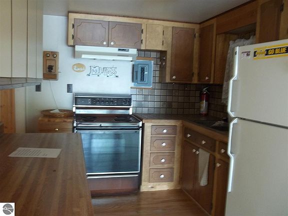 Pretty wooded setting with 100' on Chain Lake. There are two bedrooms downstairs and a 10x10 loft that the kids will love. The interior of the cottage is knotty pine with Mohawk engineered hardwood floors. A wall furnace provides heat, but the Regency woodstove is a great secondary source. There also is a transfer switch that allows you to hook up a generator if the power goes out. The garage is 24x28 and has a 20x20 extension that makes a great storage area or workshop, and there is also a 12x12 storage shed.