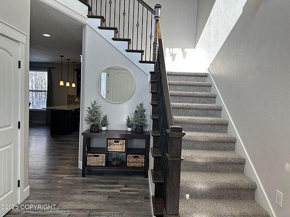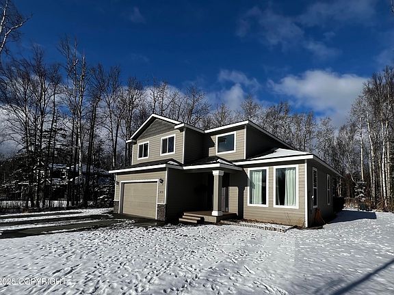 Elevate your feelings of luxury with ten foot ceilings, crown molding, and granite solid surfaces in this spacious 4 bedroom, 2.5 bath home. Convenient built-in seating at front and garage entries. All bedrooms and laundry are located on the upper level. Huge back deck with tree lined back yard, great for entertaining. Enjoy living minutes from Alaska outdoor recreation!