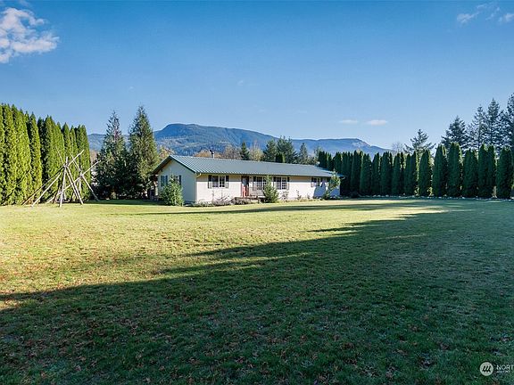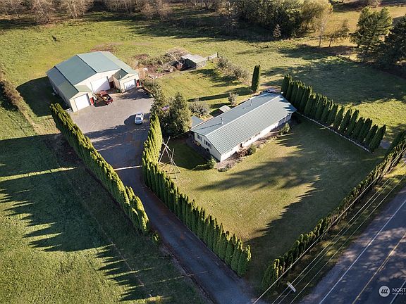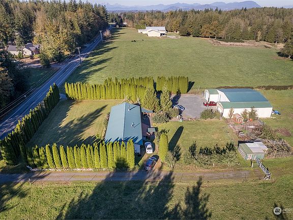 Bring all your toys & projects! This unique property includes a massive multi-bay 3,800 sqft shop w/a restroom, RV dump, 220 & a pull through bay. Build a horse barn or convert part of the shop, the pasture is fully fenced. This single level home is inviting, cozy & well-appointed w/nearly 2100sqft. The oversized great rm will welcome you w/a wood fired stove backed by a beautiful river rock wall. The kitchen has a large island, generous cabinetry, recessed lighting, pendant lights, & fantastic mountain views. Relax on your spacious deck overlooking the acreage & be amazed by sunrise over Sumas Mountain! Gardeners dream, covered patio, fire pit, plus an artesian spring & year-round salmon stream meandering through the back of the property.