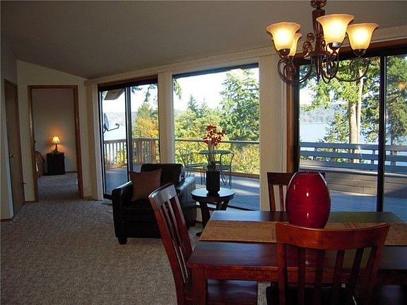 This 2902 square foot NW Contemporary home has spectacular views of Puget Sound, Vashon Island and Mount Rainier. Two master bedroom suites on the main level. Guest bedroom and family room on the lower level. Professional landscaping with sprinkling system front and back. Fenced raised bed garden with separate sprinkling risers. 3 year Trane furnace and heat pump with A/C. 3 year Trex deck. Metal storm shutters outside on main windows and glass doors. Just minutes from Gig Harbor North.