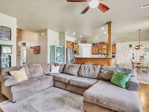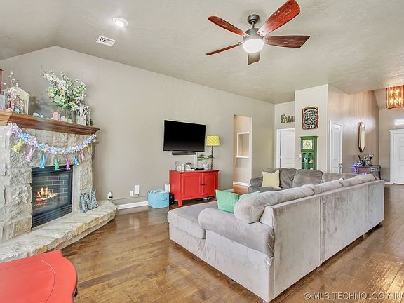 Beautifully maintained house in the sought after Vintage neighborhood in Verdigris. Walking distance to all schools and sports fields. Family friendly neighborhood with 2 ponds, walking trails, and a park, Conveniently located within 5 minutes of the turnpike, and within 20 minutes of Owasso or Tulsa. This home has so much to offer, including a large open concept, perfect for hosting, walk in closets, 10' ceilings, and a 19' entry ceiling. This beautiful home will not last, so do not miss out.